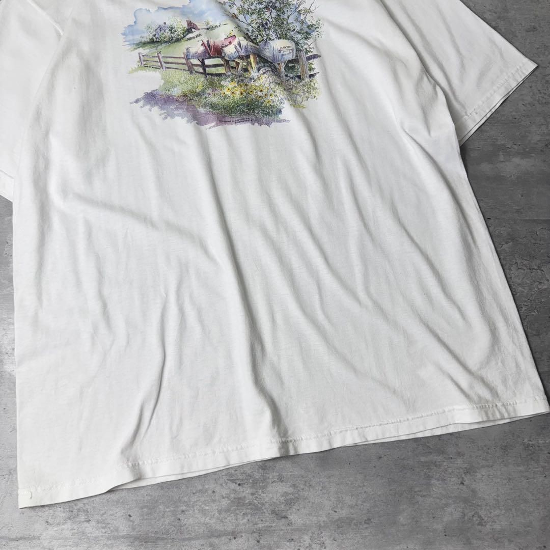 JERZEES 牧場 フラワー ポスト アート Tシャツ XL ホワイト 白