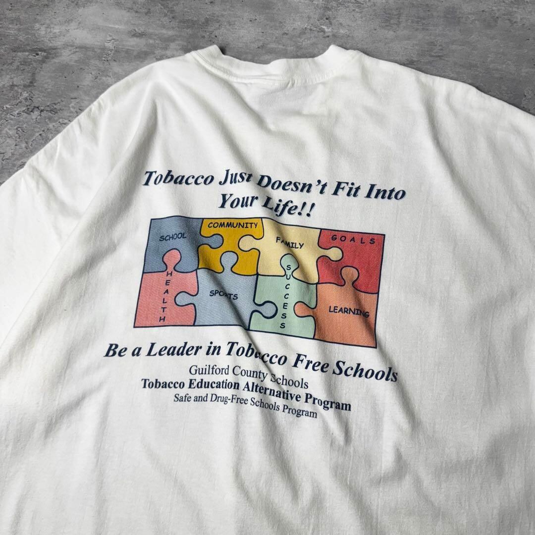 Hanes タバコ 禁煙プログラム スクール パズル アート Tシャツ XL 白