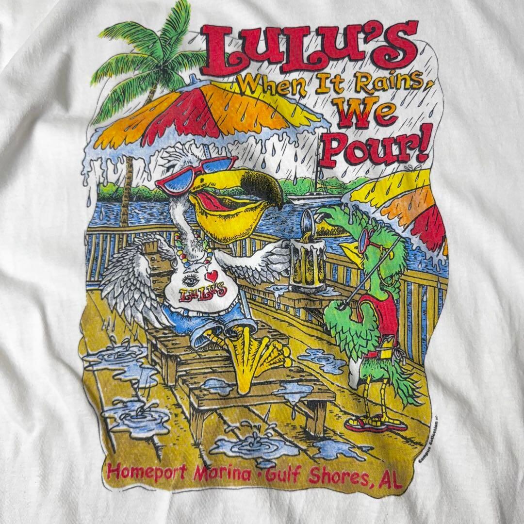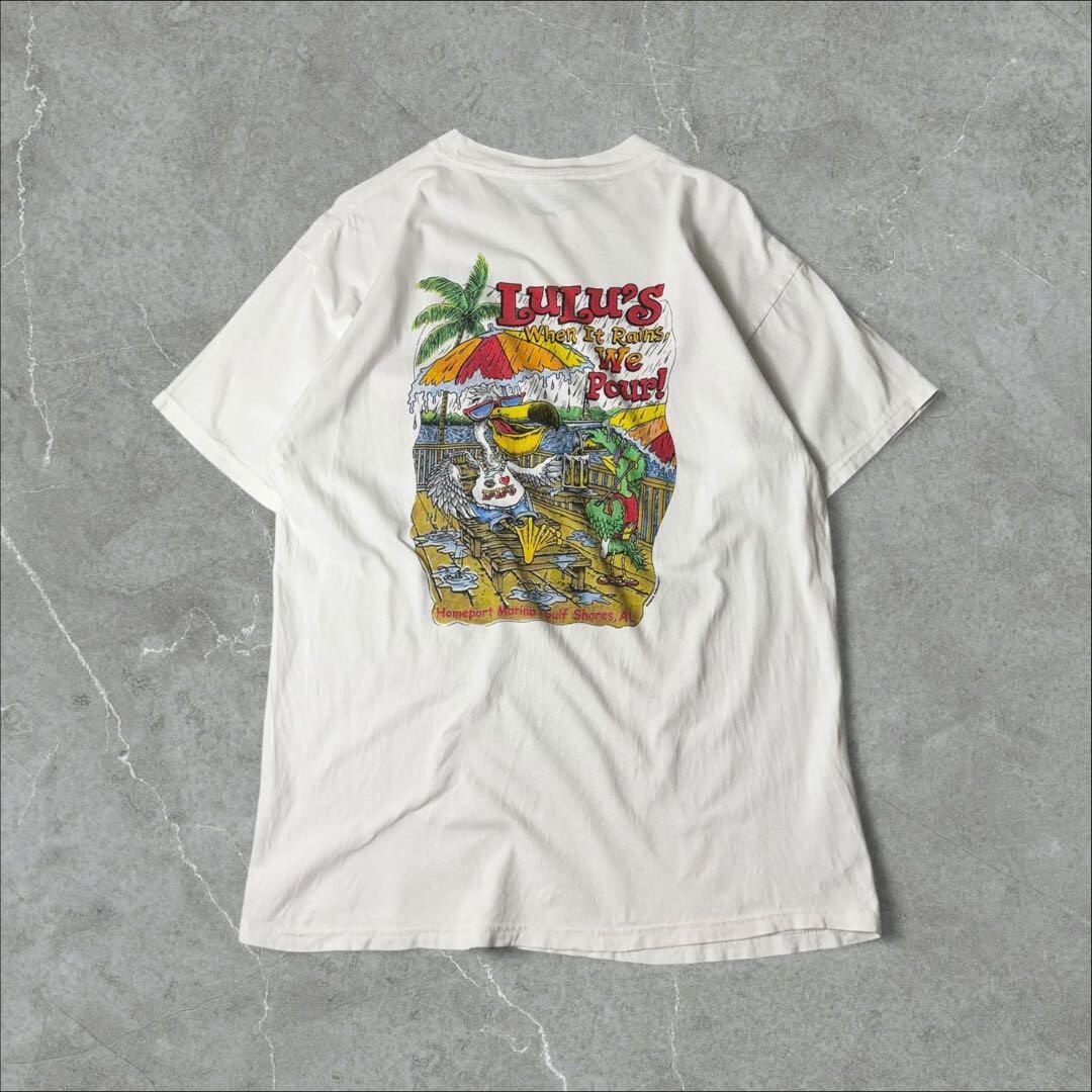 Hanes LuLu's ペリカン 鳥 雨 ビール Tシャツ L ホワイト 白