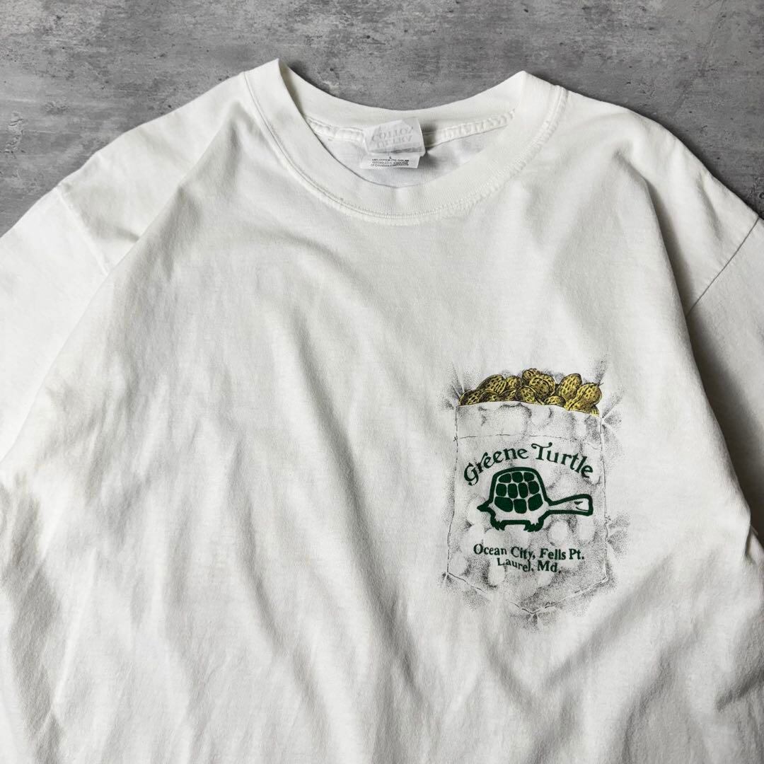 GILDAN 騙しポケット ミドリガメ ピーナッツ Tシャツ L ホワイト 白