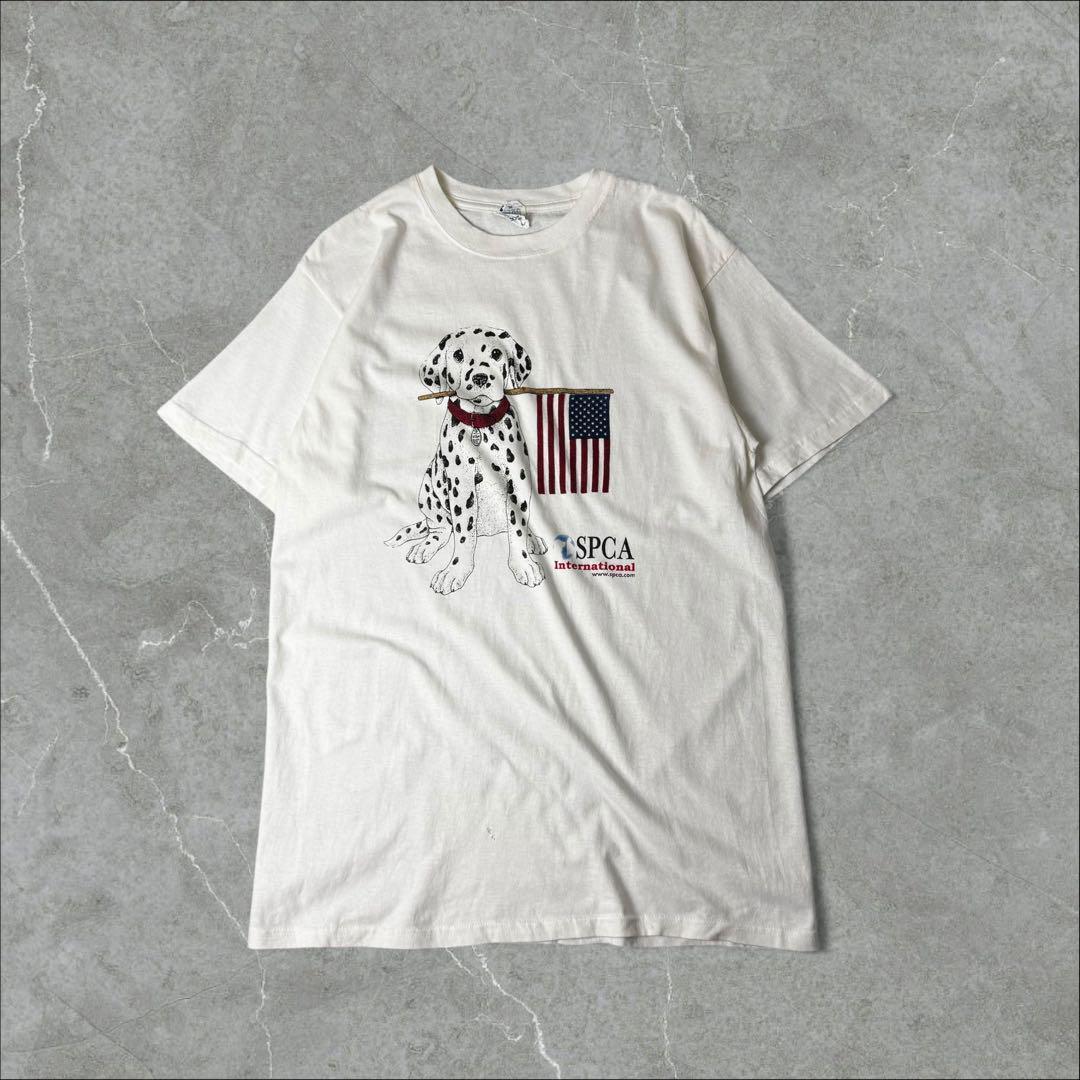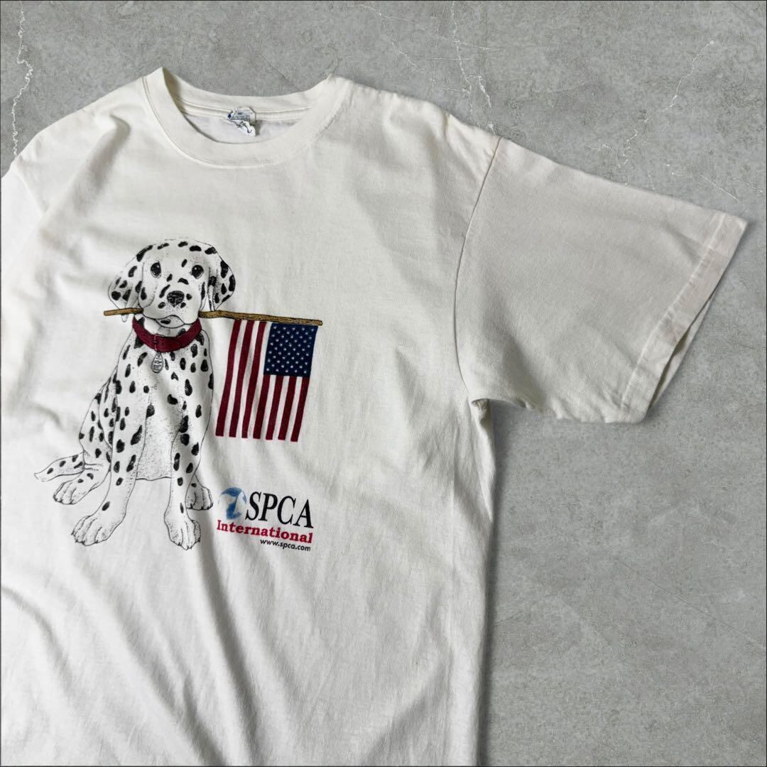 anvil 企業ロゴ SPCA ダルメシアン 星条旗 Tシャツ L ホワイト 白