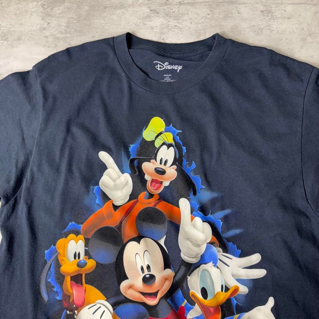【公式】Disney ディズニー キャラクター大集合 Tシャツ L ネイビー 紺