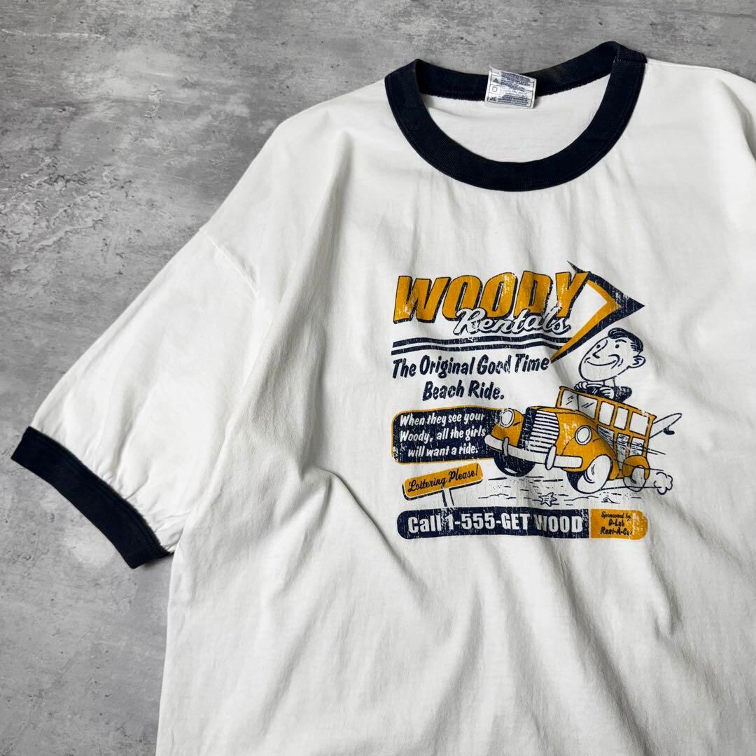 WOODY Rentals レンタカー かすれプリント リンガーTシャツ XL