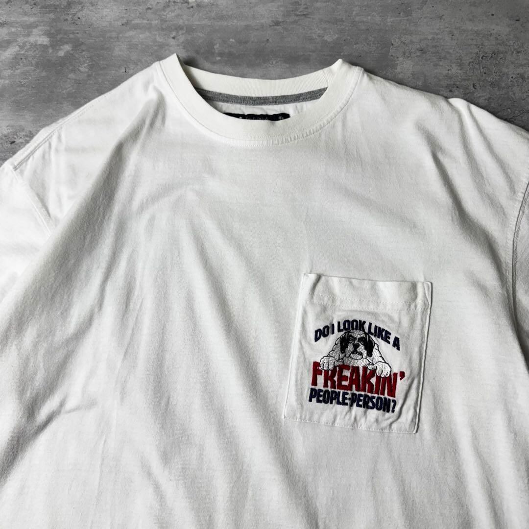 90s BIG DOG セントバーナード 刺繍 ポケットTシャツ ホワイト 白