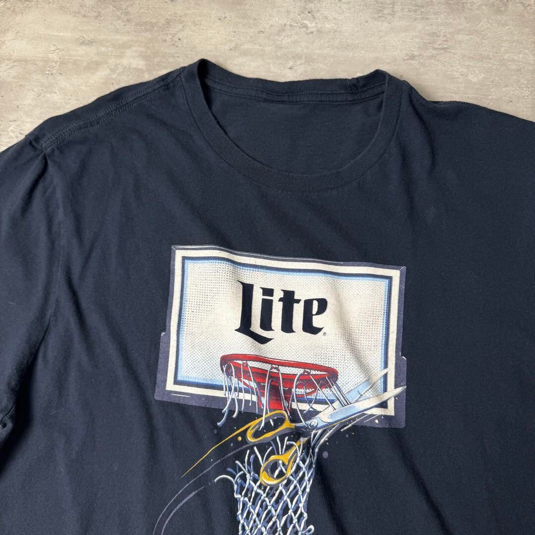 Lite Beer 企業ロゴ ライトビール バスケゴール ハサミ Tシャツ 紺