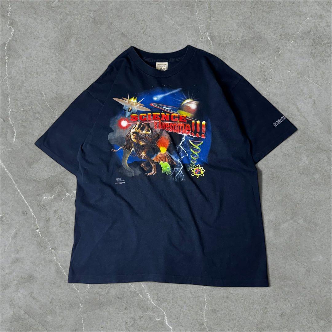 USA製 Alore シングル 科学 恐竜 宇宙 火山 Tシャツ XL ネイビー