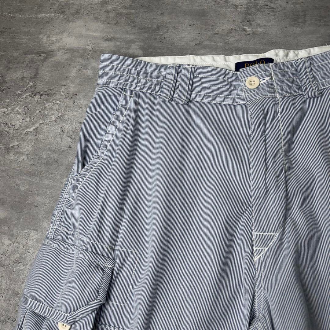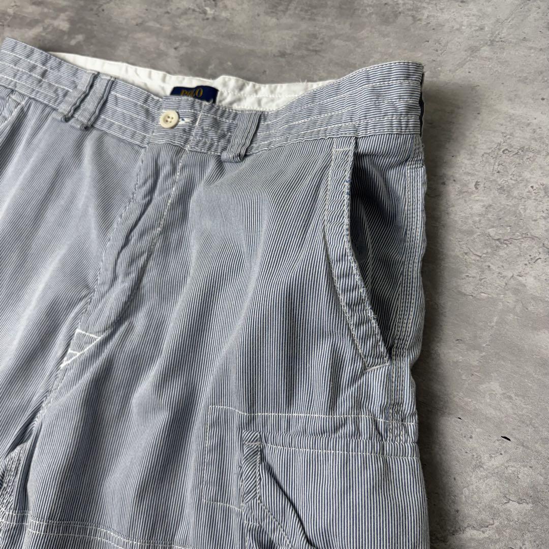 Polo Ralph Lauren 細ストライプ カーゴショーツ W34 ブルー